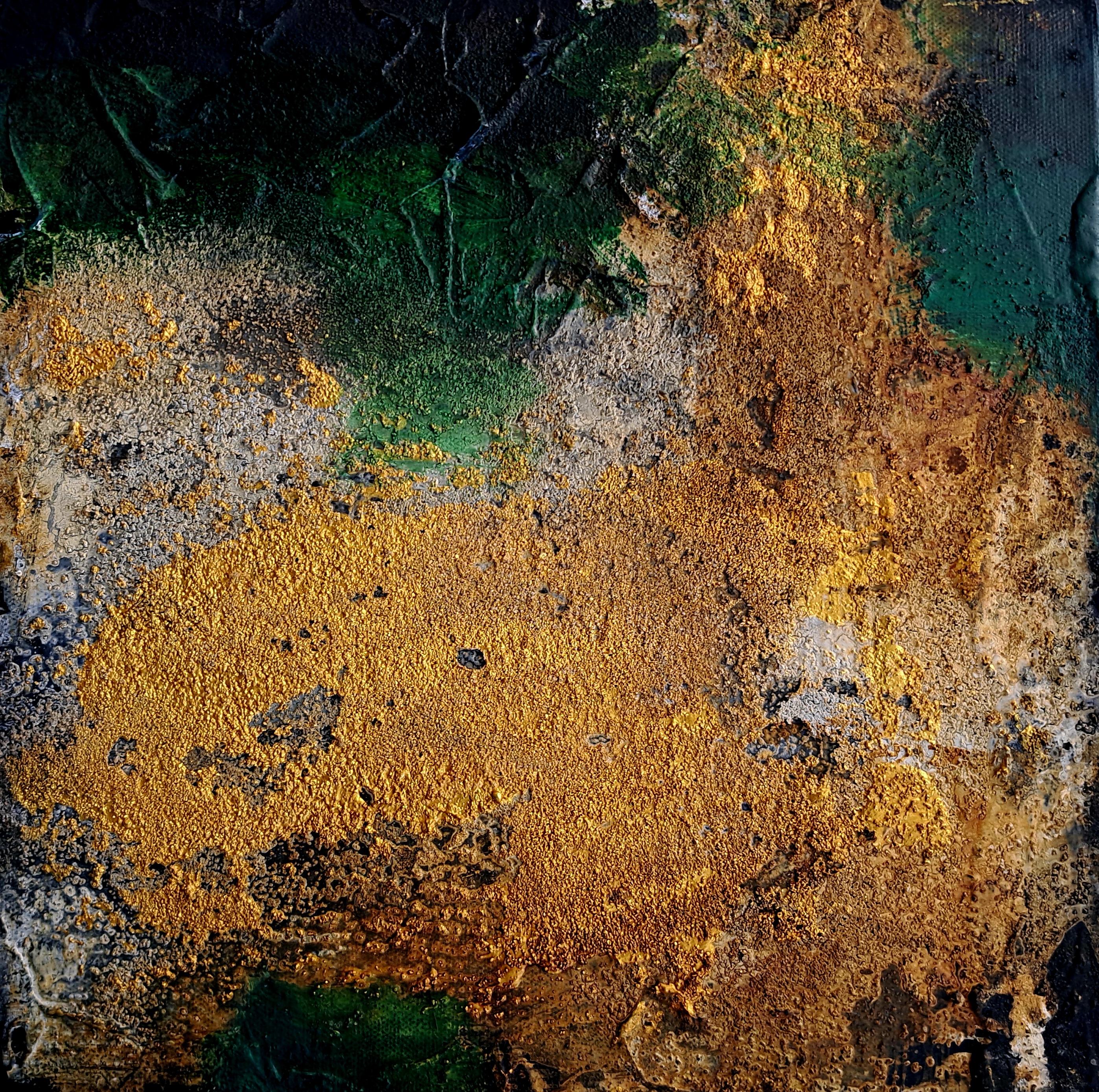 Die Künstlerin nutzt eine Vielzahl von Materialien und Techniken, um mehrschichtige, reichhaltig