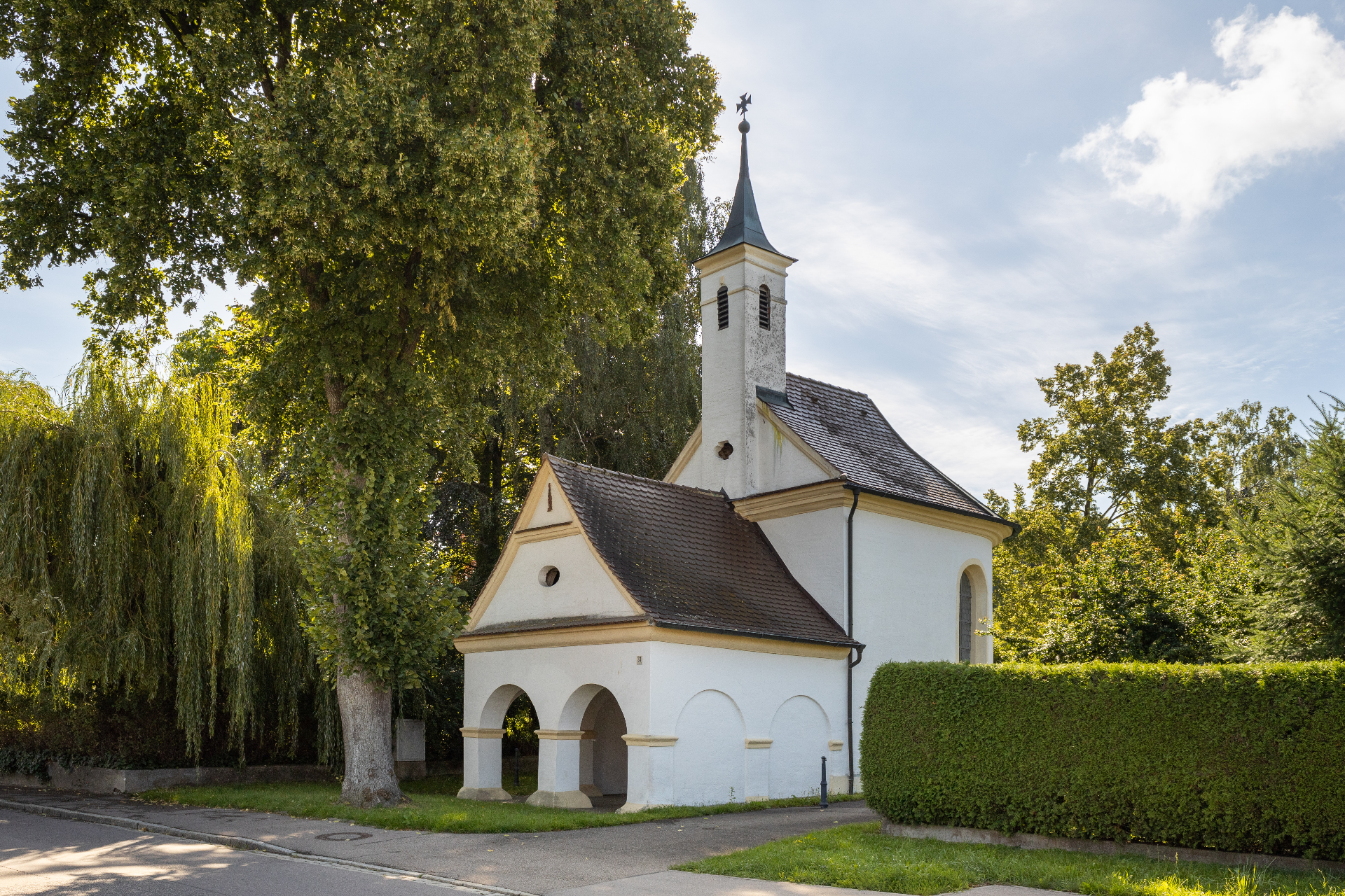 Die kleine, originelle Kapelle wurde 1718 aufgrund des Gelübdes einer Lauterbacherin nach der Errettung aus einem Gewittersturm erbaut. Früher bestand hier eine bedeutende Wallfahrt. Von der Kapelle führt ein Kreuzweg zur Lourdes-Grotte mit schöner Aussicht auf das Donauried.