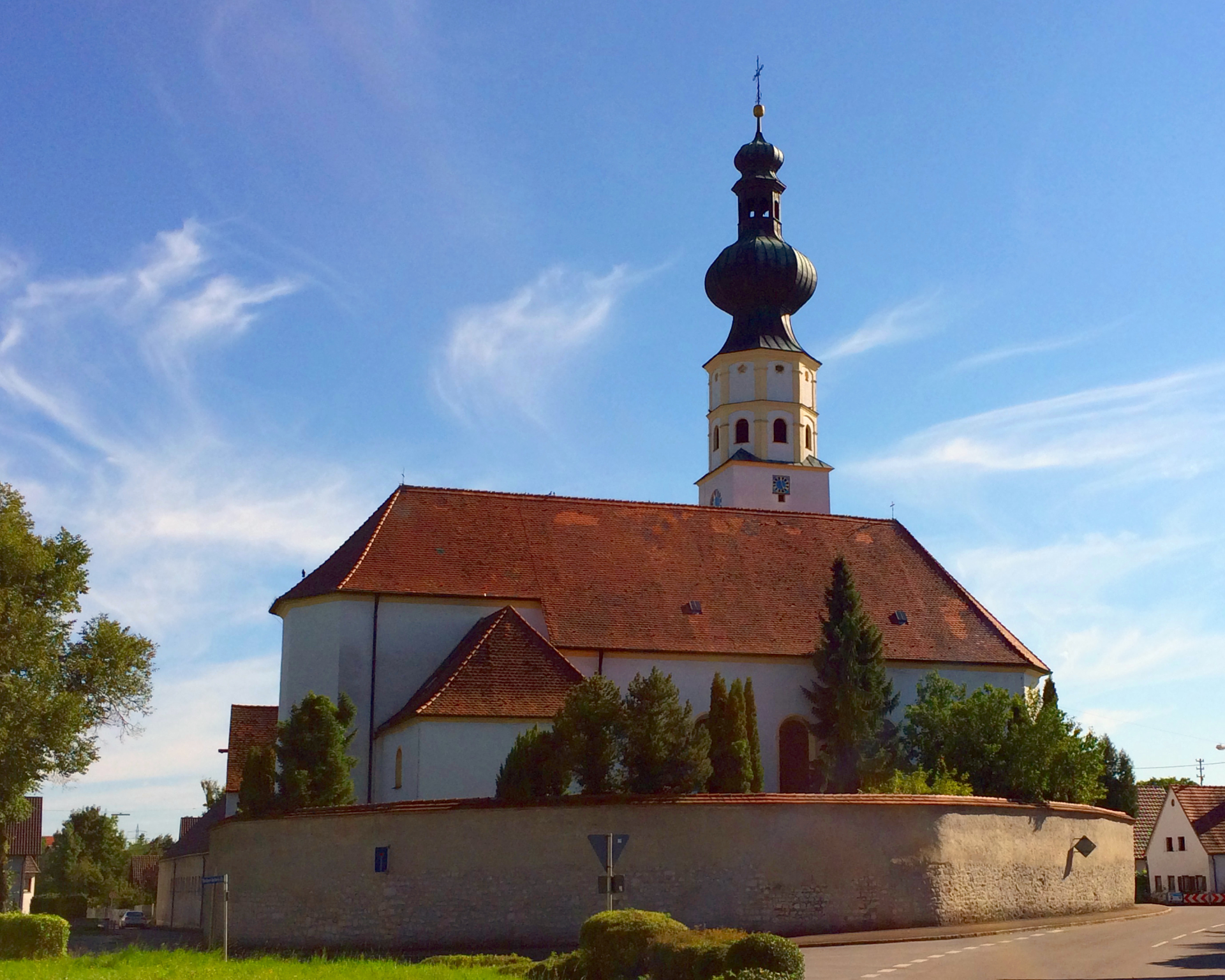 Die Kirche im Ortsteil Donaualtheim wurde im 17. Jh. errichtet und in der Mitte des 18. Jh. im Stil des Rokoko umgestaltet. Sie befindet sich im ummauerten Friedhof an der Stelle der wohl ehemaligen Burg der Herren von Altheim. Im Jahr 1972 wurden bei Renovierungsarbeiten die Grundmauern einer gotischen Vorgängerkirche aus dem 14. Jahrhundert entdeckt.